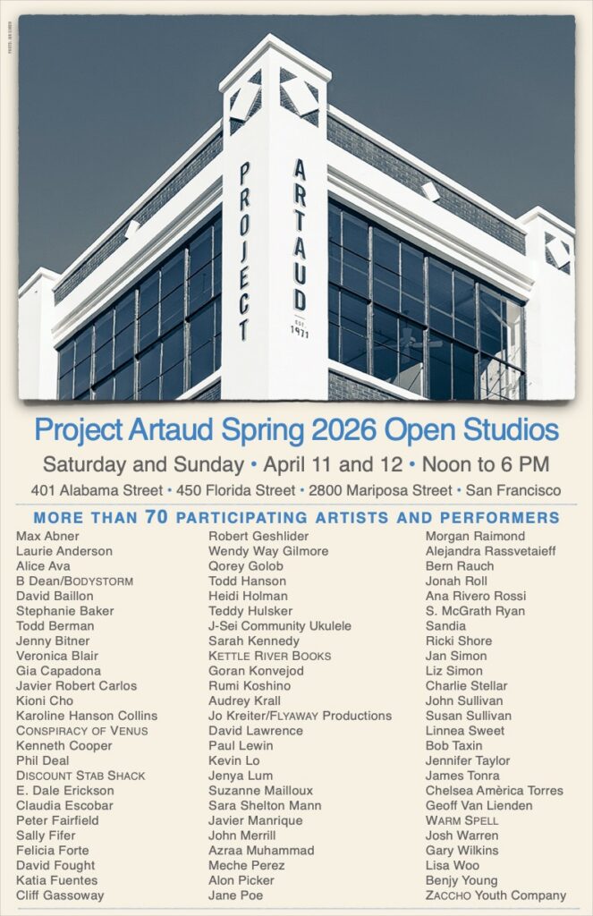 Welcome to Project Artaud, a pioneering arts complex in San Francisco’s Mission District. Project Artaud is one of San Francisco’s leading artist communities, housing four performance spaces and 10+ creative non-profits. We are also home to an intergenerational enclave of creative leaders–over 80 painters, sculptors, designers, photographers, filmmakers, writers, musicians and performers.